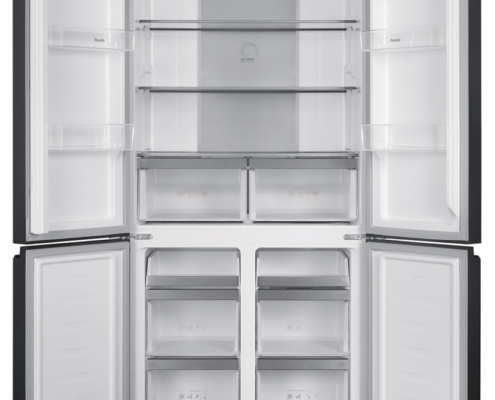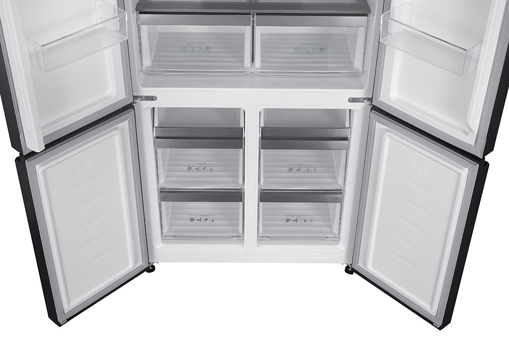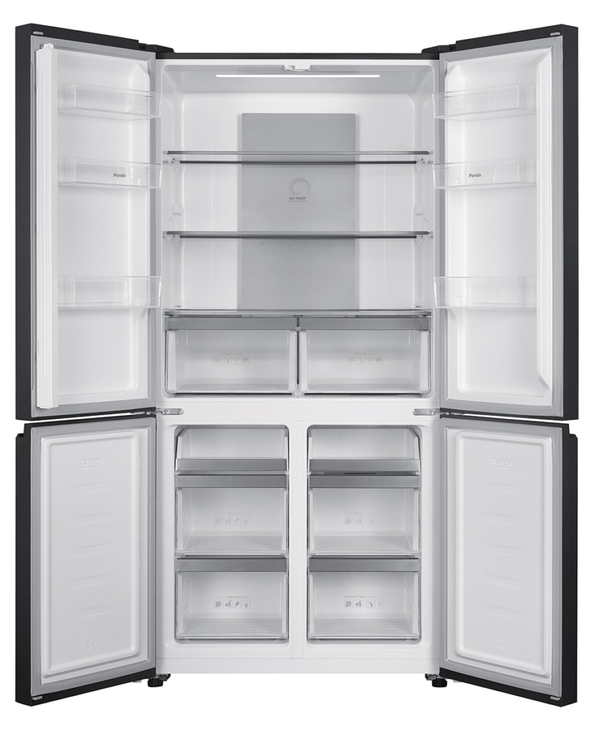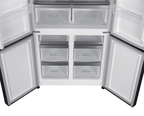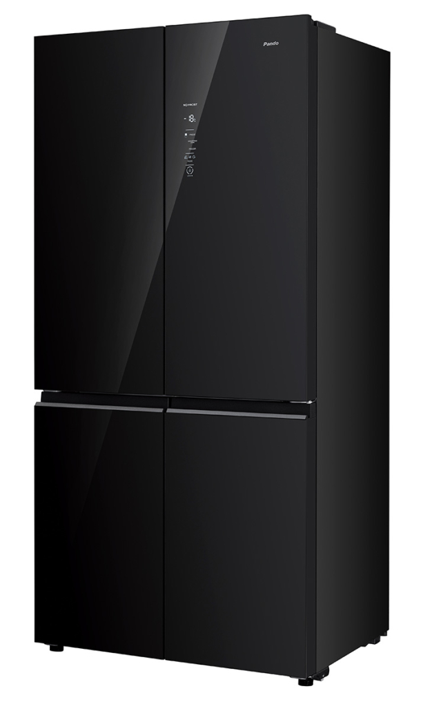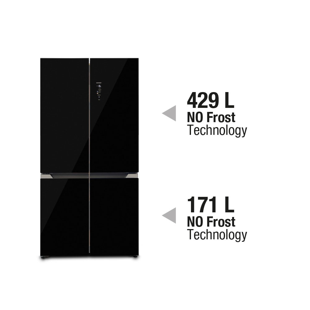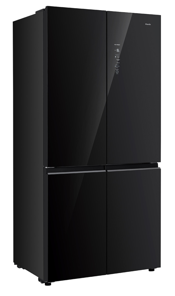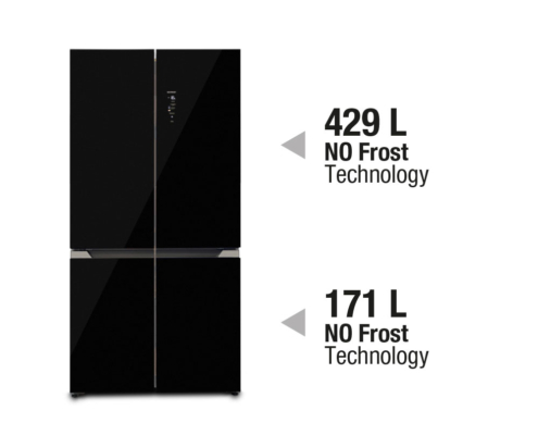 Frigorifero americano a quattro porte con finitura in vetro nero. 600 L.