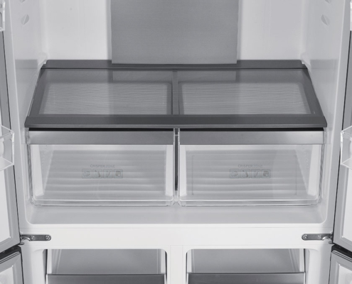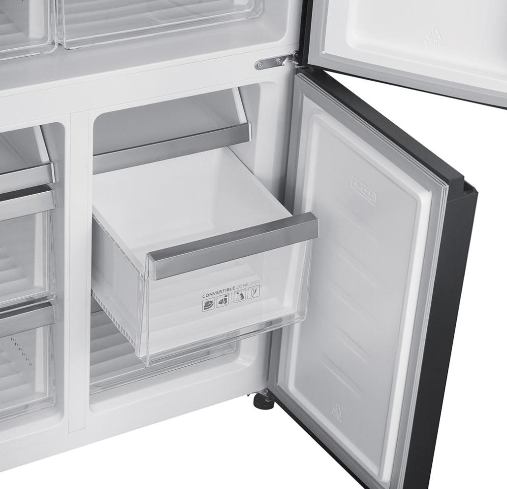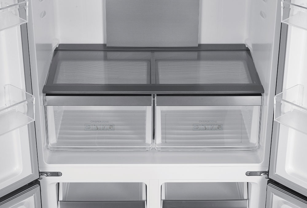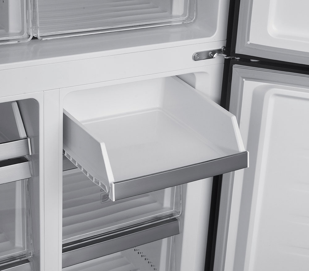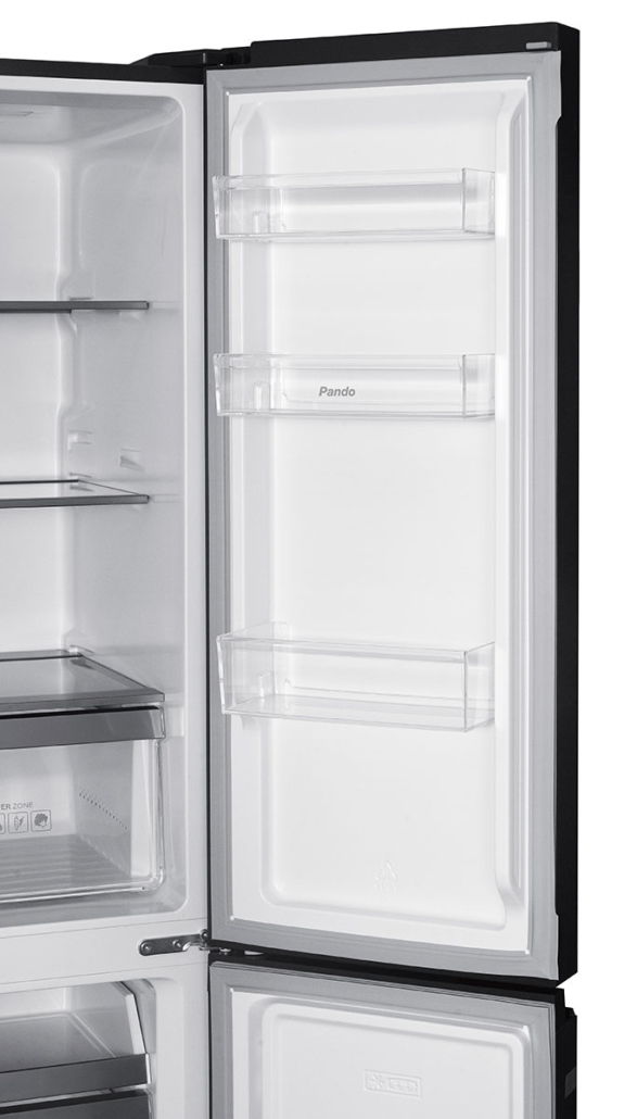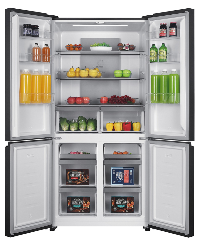 Frigorifero americano a quattro porte con finitura in vetro nero. 600 L.