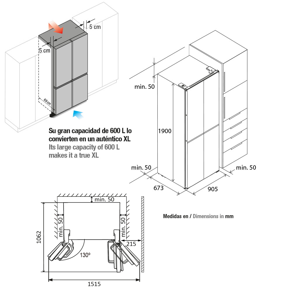 - Capacità totale600 LFrigorifero 429 L – Congelatore 171 L