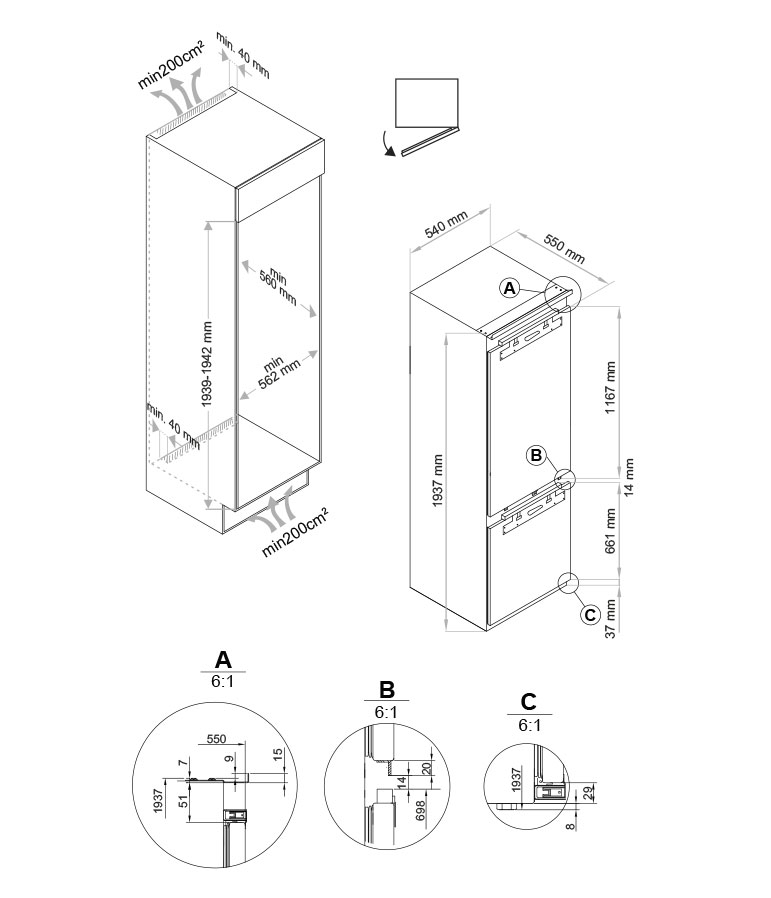 Frigorifero con integrazione a pannello 194 x 54