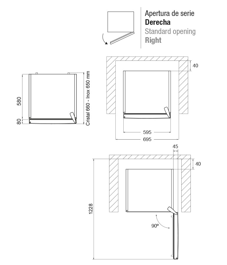Dimensioni del prodotto (AlxLaxF) in mm: 210 x 595 x 660