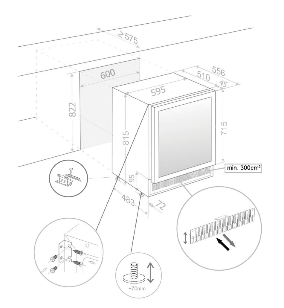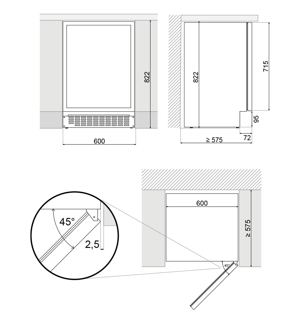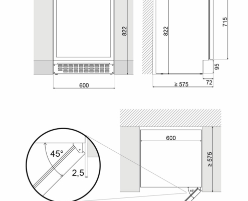 Dimensioni incasso – HxLxP (mm) 822 x 600 x 575